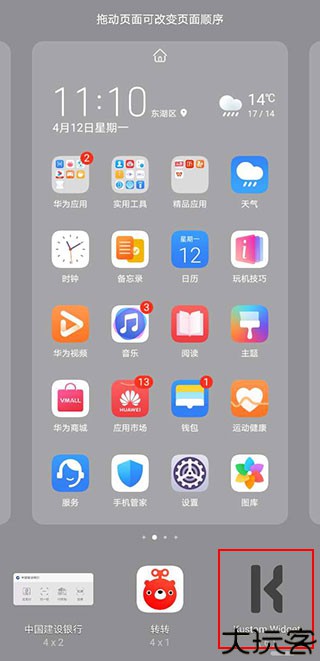 1、在桌面上双指向中间滑动,唤出桌面挂件菜单。