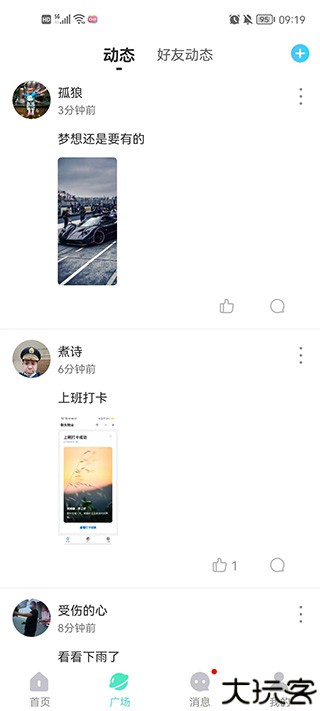 2、点击右上角+号功能,发布你的动态,释放你的心情。