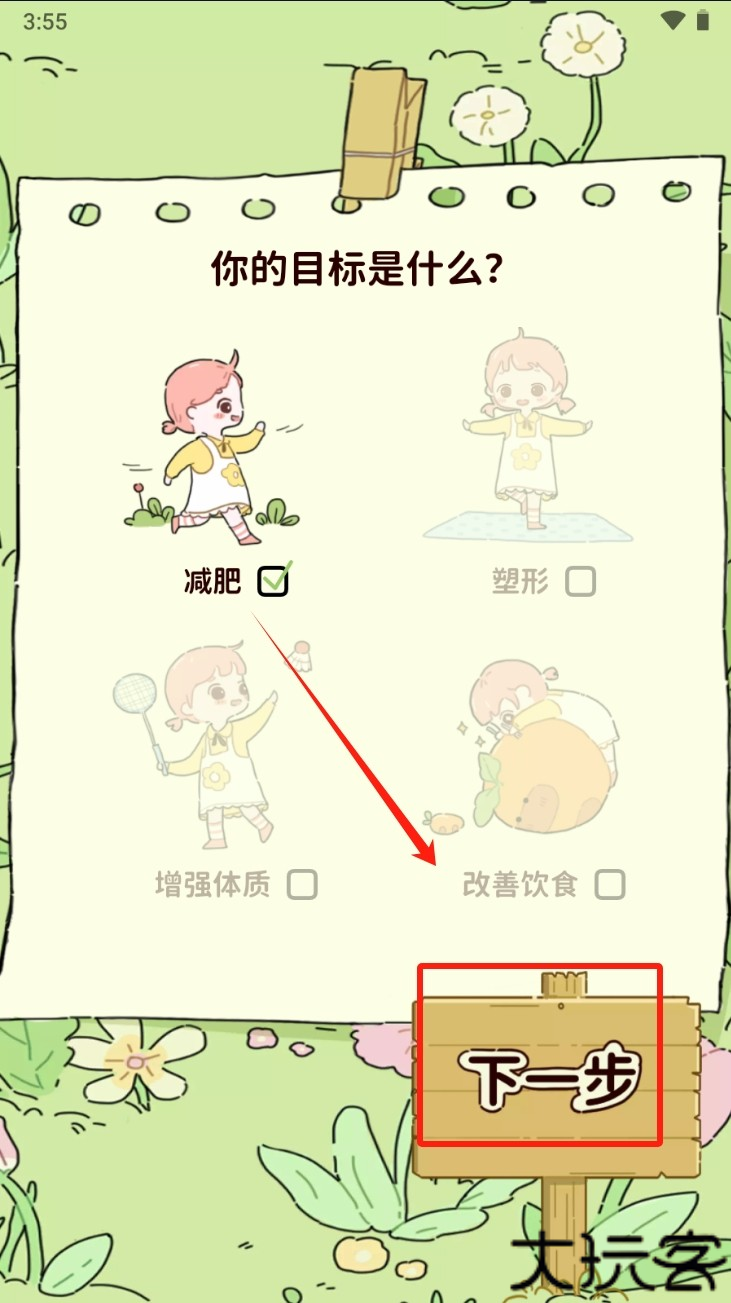2、用户可以去选择减脂目标,在去点击“下一步”继续操作。