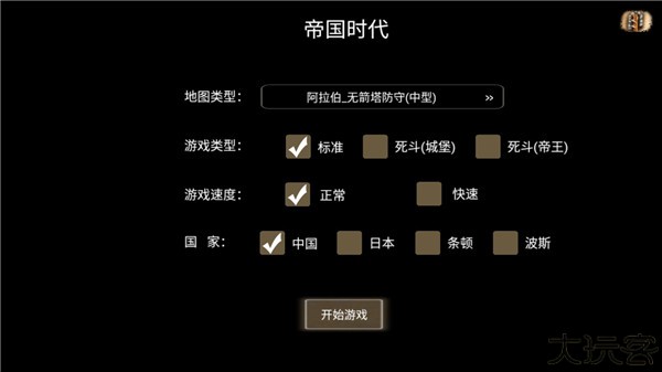 2、玩家可以可自由选择地图类型,游戏玩法类型,游戏速度和国家阵营。