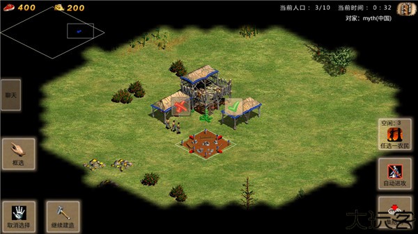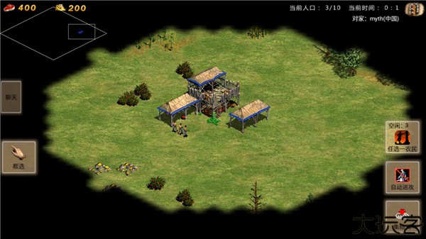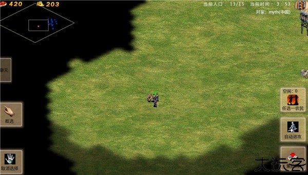 3、玩家进入游戏后,可以点选农民也可以点击框选按钮,选择范围内的农民。