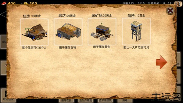 4、玩家选择农民并点击建造即可建造民用建筑或者军用建筑。