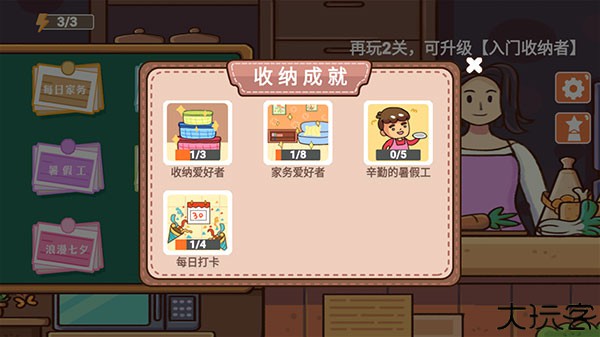 玩家不整理的话,东西会很容易变得混乱不堪,通过解锁更多的收纳道具将他们整体干净。