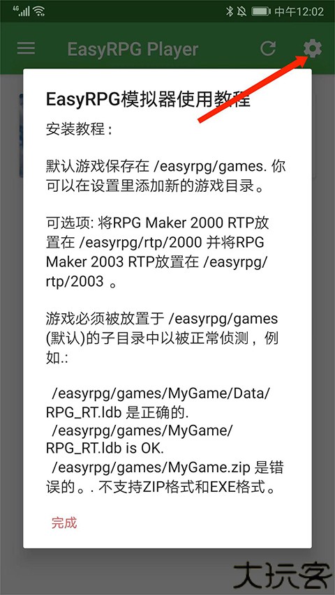 初始游戏路径为/easyrpg/games,可在右上角齿轮中添加新目录。