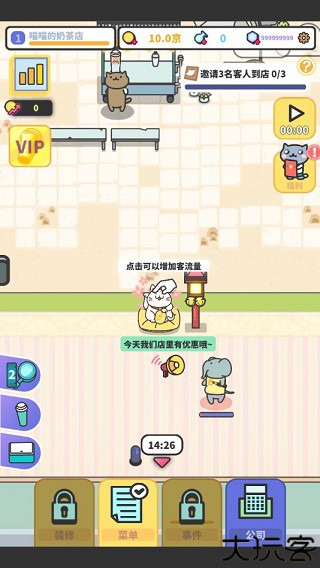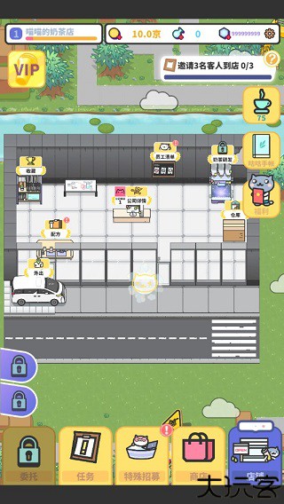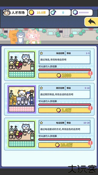 2、购买新道具,招募宠物提高店铺人气,赚取更多收入。