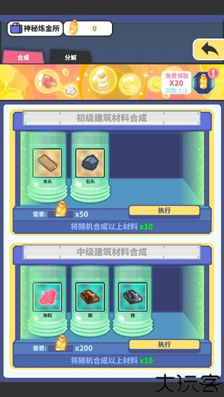 4、外出后去【神秘炼金所】里可以使用材料点数合成想要的材料。