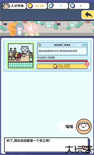 1、可以外出去去【人才市场】或者在总部【特殊招募】聘请新的猫猫员工。