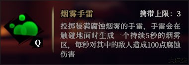 3、而太子的次要技能是“烟雾手雷”,烟雾手雷属于腐蚀伤害,对于拥有护甲的怪物效果非常明显。而且在觉醒和秘卷等额外加成下可以不断提升其属性,属于玩家闯关的核心技能之一。
