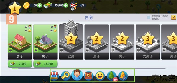 2、其中有各种类型的建筑物,玩家可以用这些装扮岛屿。