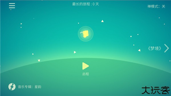 操作简单,只需收集星光,完成更长的旅程。黑洞分为两种,其中带红色核心的黑洞会不断追赶你,而只有像北极星一样闪耀的白色星光才能化解危机。