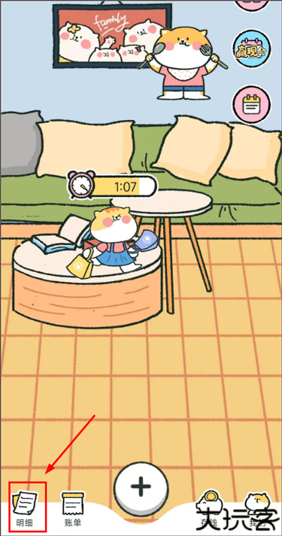 1、打开应用,首页下方点击明细进入账单记录页面。
