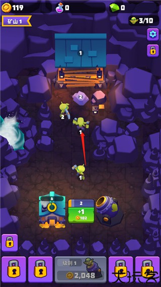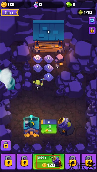 6、只要将两个同等级矿工拖放合成,就得到更高级的矿工,让采矿效率变得更高。