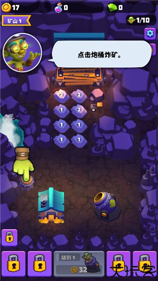 2、点击爆桶炸矿,也可以得到矿工。