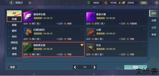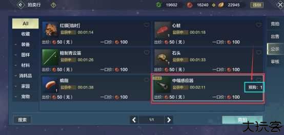 拍卖仅能竞价一次,等待期结束后最高者获物,急需可直接一口购。