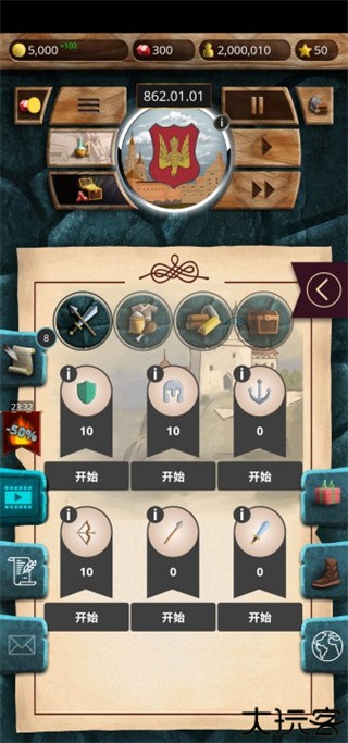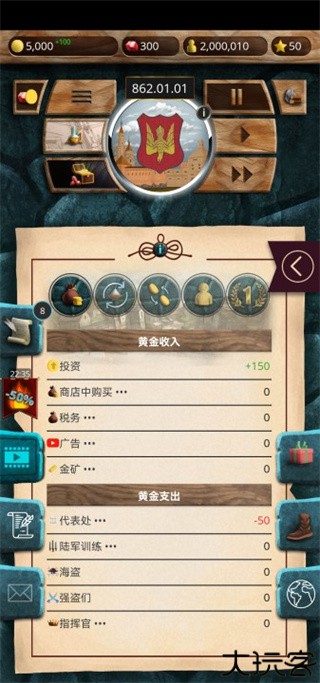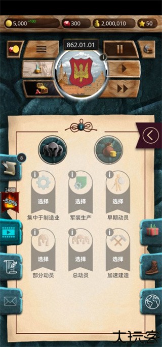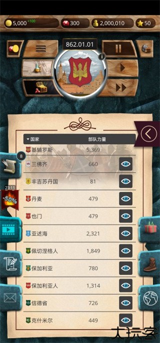 12、右下角有个地球的标志,玩家可以点击以打开地图与其他国家进行互动或查看其他国家战记。