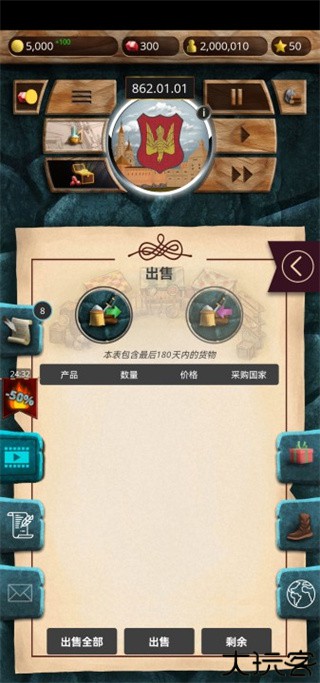 玩家只能与建了大使馆的国家进行交易,可以向他们购买食物或资源,每次玩家购买完资源都要等段时间才会送到自己的手上。