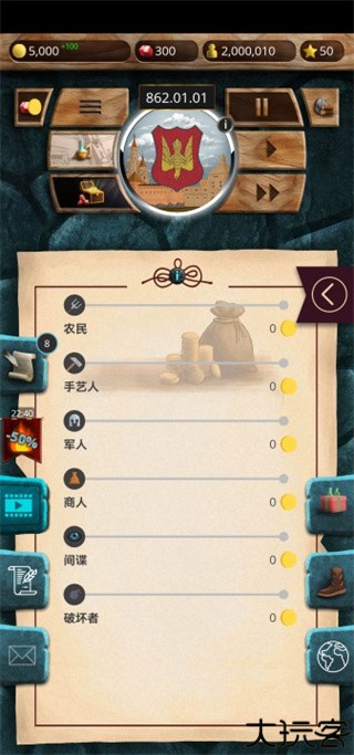 玩家可以看到自己当前各个单位的人口数量,也可以招聘农民或其他经济单位,一来不要随意招聘太多人民,不然会陷入粮食短缺,最后导致国家的国民支持度会下降。