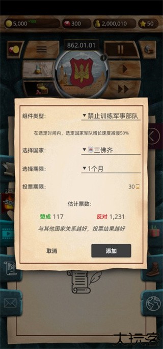 2、作为一个国家可不能没有属于自己的制度,所以玩家要根据情况制定出合适国家发展的法律,让市民们好好遵守。