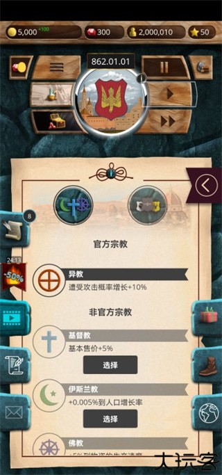 选择合适的宗教可以给自己加一些小buff,根据现况自行选择。
