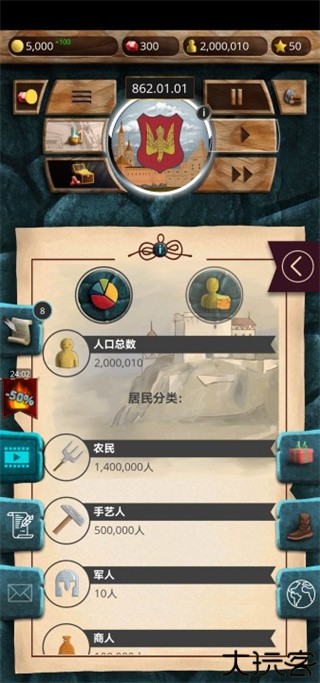 2. 除了军事战争以外,玩家还可以发展经济、文化、宗教等多个发展要素,实现国家的综合发展。