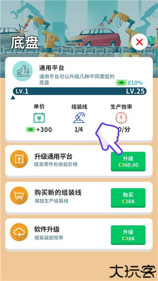2、游戏让玩家体验生产和销售汽车的过程,透过合理安排员工岗位来提升效率。