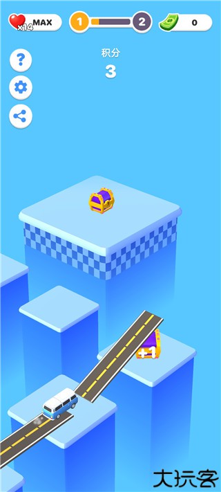 2、将从一辆车开始进行冒险,而且可以不断建造桥梁来抵达终点。