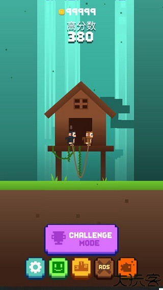 4、玩家需要向着更高分数发起挑战,与传统的单人跑酷游戏相比,玩家还需留心绳子另一端的猴子,不断调整它们的位置。