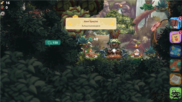 5、成年的鸟可以在时间内获得资源,资源用来打造更多鸟巢或解锁更多植物
