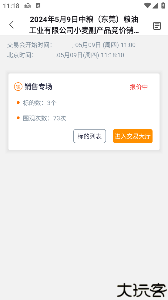 3、点击“标的列表”,用户还能查看更为详细的粮食产品信息,还分成不同品种和质量等信息。