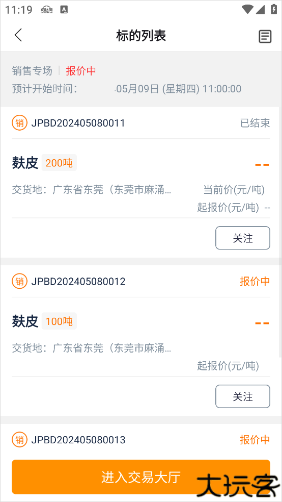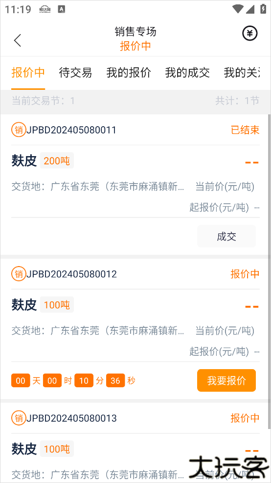 4、点击“进入交易大厅”即可参与交易,点击“我要报价”去和对方进行交易。