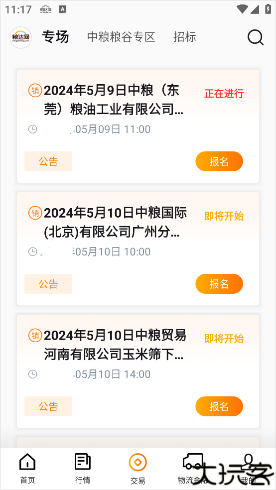 1、用户进入应用后,即可在交易页面下看到相关的粮食产品信息。