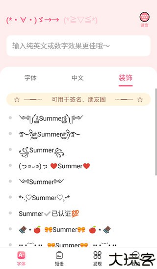 2、60+热门文字装饰组合使用更方便,来去轻松彰显不同。