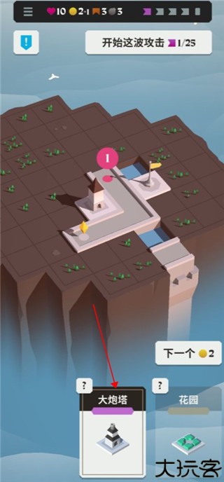 6、玩家点击旁边的“下一个”,即可选择炮台将其放置在防御路线上以便消灭敌人。