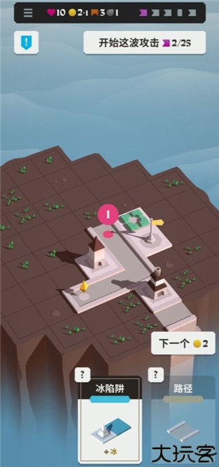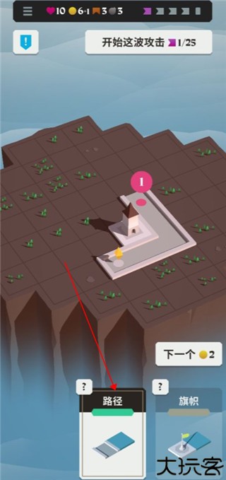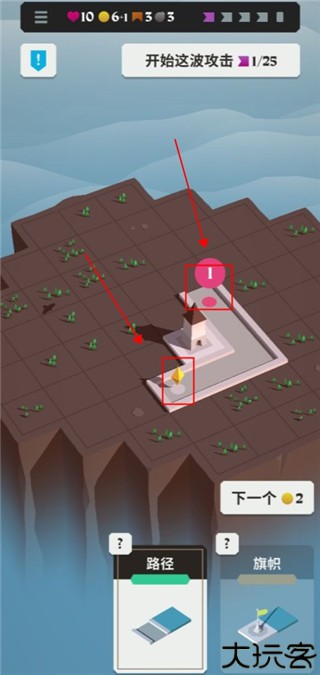 7、当玩家的金币不够后,需要点击上面的“开始这波攻击”,将敌人放出来消灭以获取金币,以便能放置更多的设备。