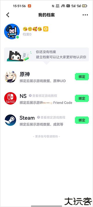 2、需要进入我的档案界面,在这里绑定游戏账号。
