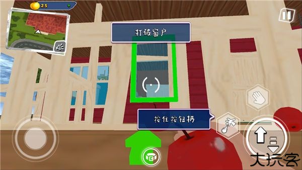 使用苹果砸碎窗户玻璃,进入房内寻找线索。