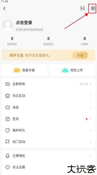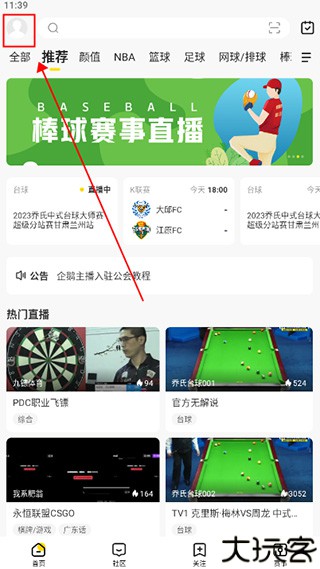 在手机端打开企鹅体育,点击左上角头像进入个人中心。