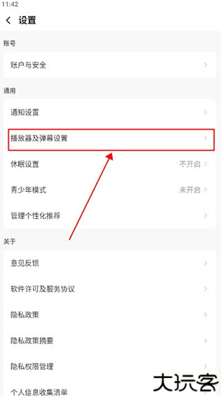 在设置中进入“播放器及弹幕设置”界面。