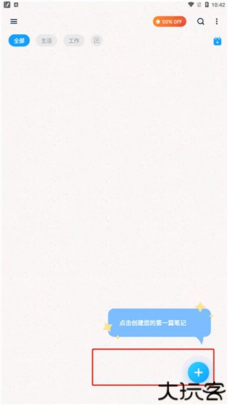 1、打开软件后,进入首页,并点击+,用户就可以开始创建笔记。