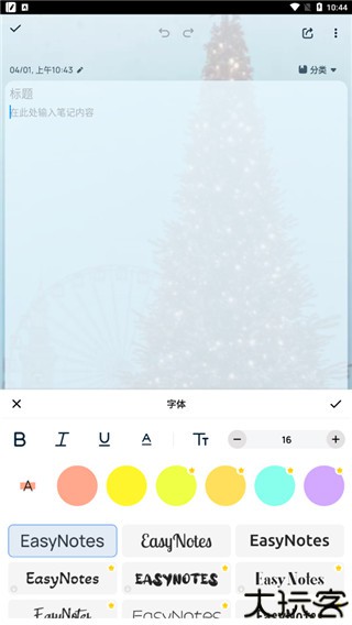 4、点击写有“标题”的空框,用户可以为自己的笔记添加各种标题。