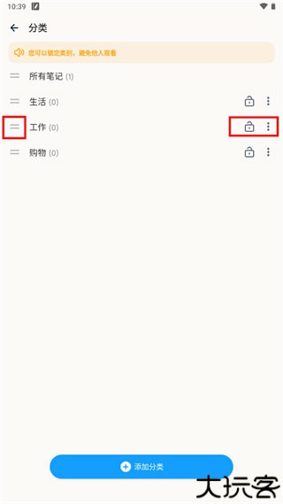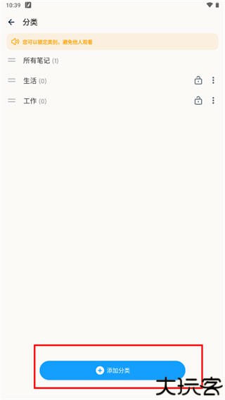 2、当玩家进入分类页面后,点击“添加分类”即可添加新分类。