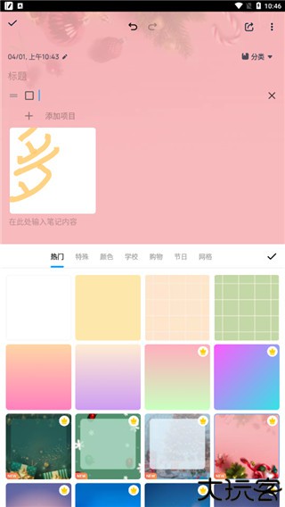 6、点击画板图标,用户可以自由更改笔记的背景。