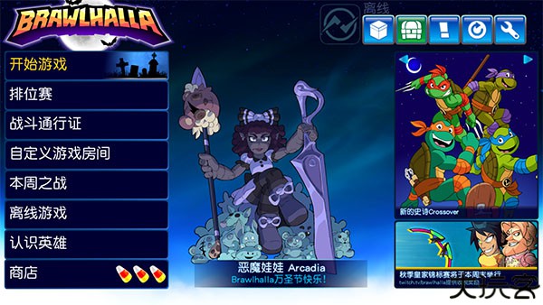 格斗哈拉手机版,又叫英灵乱战,英文名叫Brawlhalla,是由同名电脑游戏从Steam上移植而来到手机平台,好让手机玩家也能一同享乐的2D横版动作格斗游戏。格斗哈拉手机版下载完成后,玩家可以从中享受各种丰富好玩的模式和玩法,不光有1v1单人对战,还支持本地对战以及在线多人对战,甚至提供了一些休闲模式,如大乱斗等。,玩家可以随时邀请好友或者和其他玩家一起在线竞技。