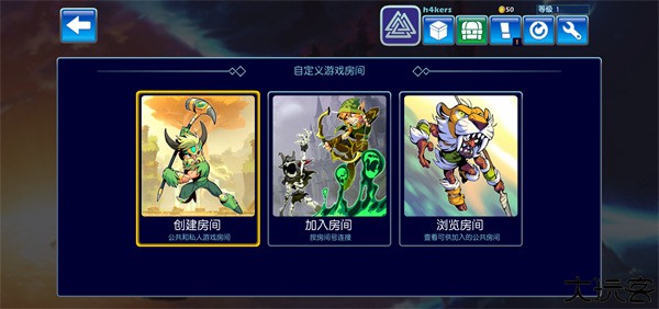 1、在游戏主界面里,找到自定义游戏房间并进入。