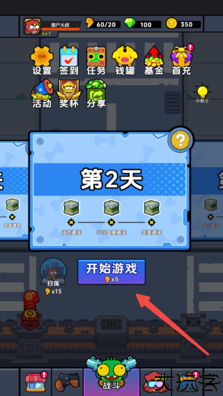 1、进入作战界面点击开始,正式进入僵尸防线战斗。
