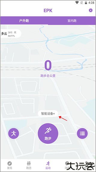 1、启用蓝牙后,进入运动模块,点击智能设备+开始。