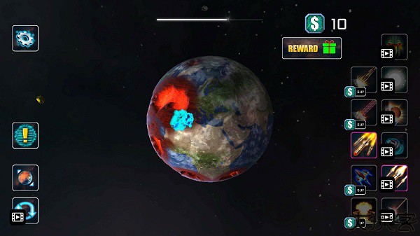 1、点击右侧功能栏,自由选取攻击方式,对星体发起操作。
