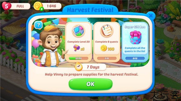 2、玩家进入游戏后,需要帮助山羊奶奶修好她的房子,通过三消游戏可以推进游戏进度。