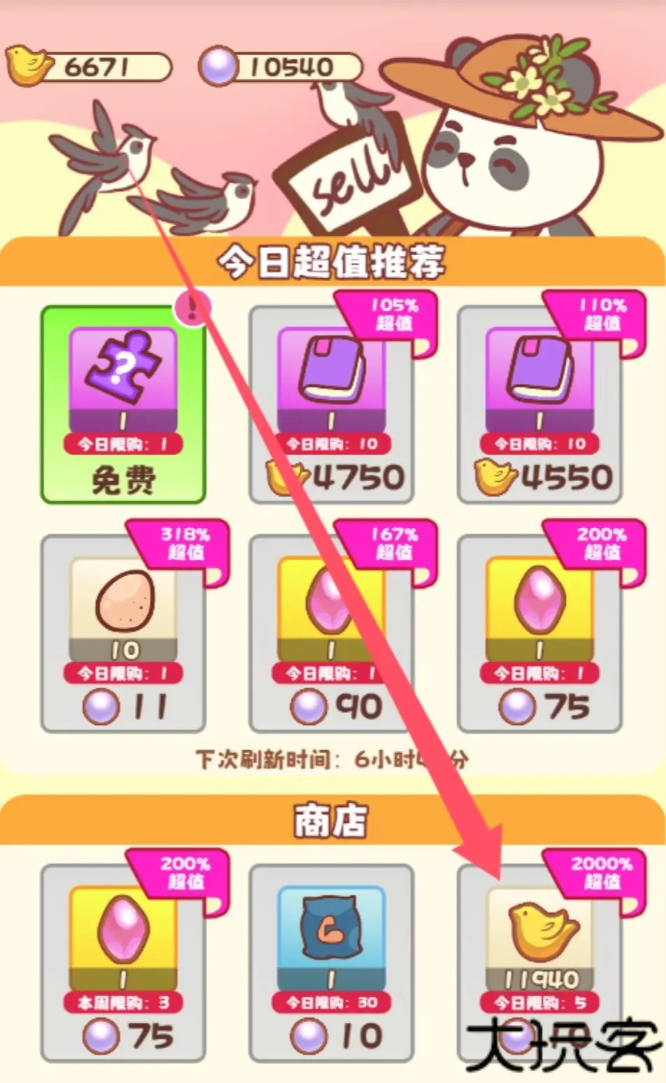 花费珍珠可买鸟币,价格递增,每天限购五次。
