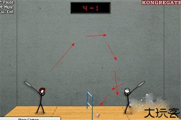 6、赢得一局,接下来装备好下一场开始。电脑似乎没有增加什么难度,跳起来打羽毛球,拉一个高远球,电脑还是接到,然后就出现失误,直接打向了网前。